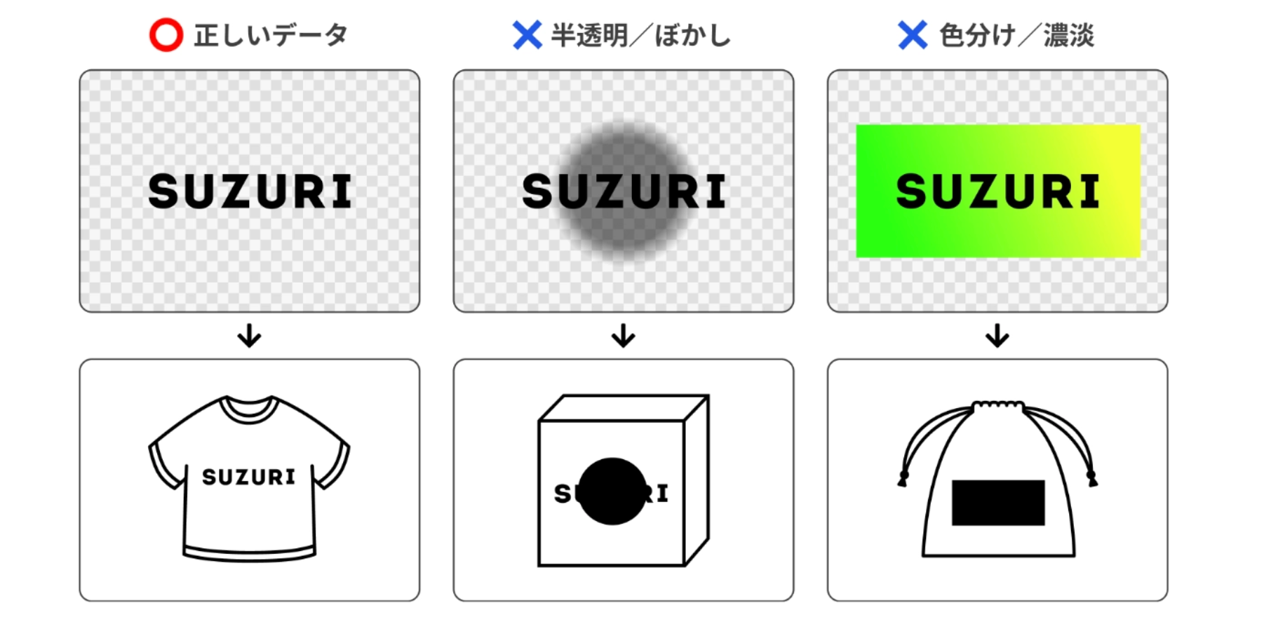 シルクスクリーン印刷(SUZURIノベルティ)でデザインを入稿する際は、以下の点にご注意ください。